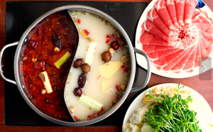 片方に紅湯(ホンタン)という辛いスープ、もう片方に白湯(バイタン)という塩味の豚骨スープに好みの食材を入れてわしゃわしゃ食べるスタイルです。。