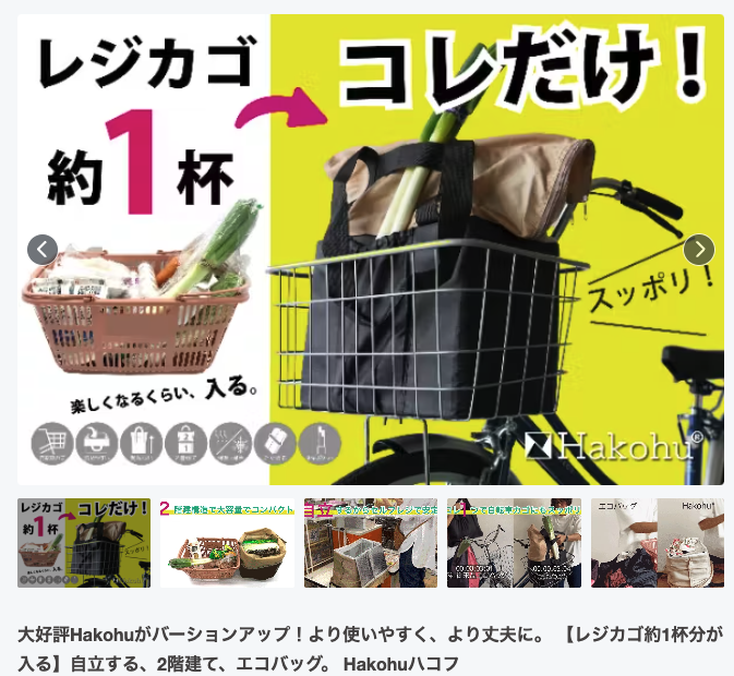 レジカゴ約1杯、自転車前カゴに入る、自立する、二階建て、の大人気エコバッグです!
